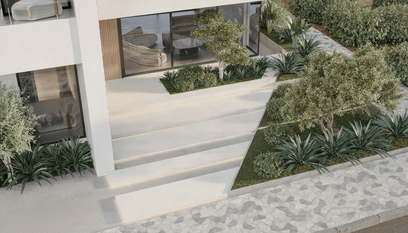 The villa’s garden is a tranquil oasis home to palm trees and fragrant flowers, bringing renewed life to the space.